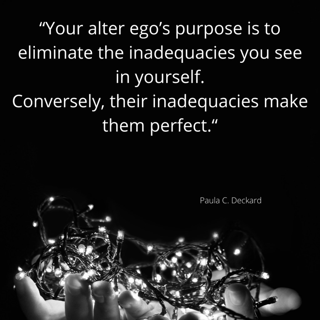 Your alter ego’s purpose is to eliminate the inadequacies you see in yourself. Conversely, their inadequacies make them perfect.