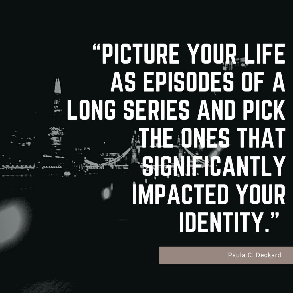 One is not aware when they create an alter ego to cope with who they are—not quite in the early stages when they discover writing as a form of therapy. Picture your life as episodes of a long series and pick the ones that significantly impacted your identity.