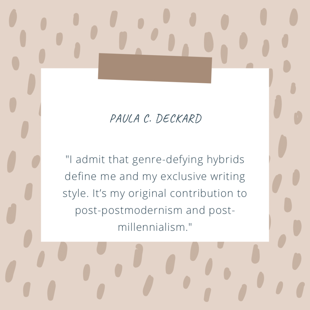 As an author of literary fiction (transgressive, weird, crime, and psychological thriller, YA), I admit that genre-defying hybrids define me and my exclusive writing style. It’s my original contribution to post-postmodernism and post-millennialism. I’m an exophonic writer, and it’s how I want my readers to know me. I’m versatile too. That’s the only time I want to be in the spotlight as an author.