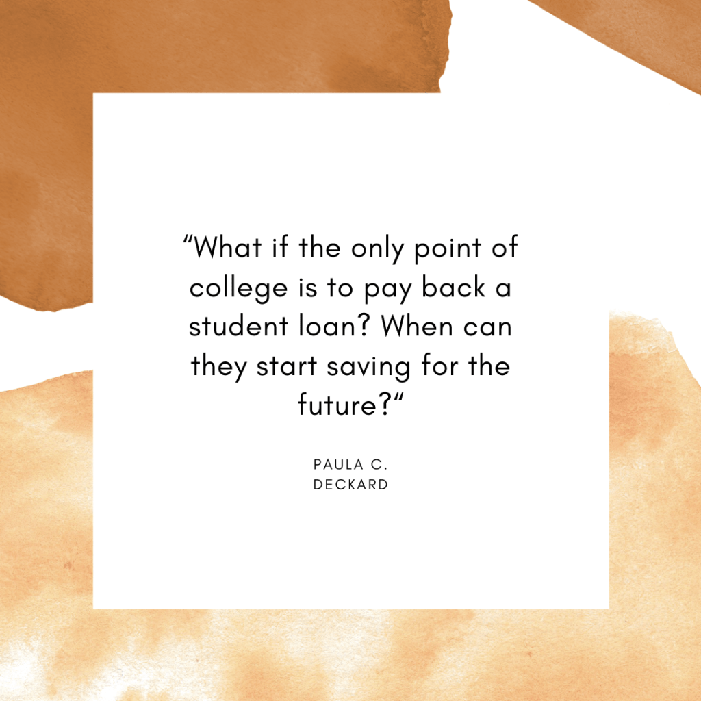 What if the only point of college is to pay back a student loan? When can they start saving for the future? One issue arose in 2017 according to Charlotte Alter—author of The Ones We’ve Been Waiting For: