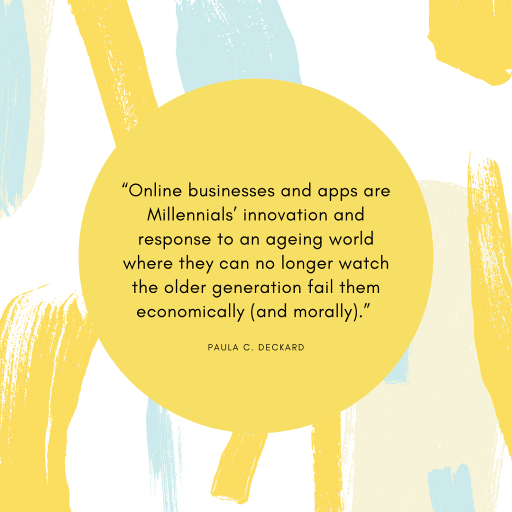 However, it is the Millennial’s innovation and response to an ageing world where they can no longer watch the older generation fail them economically (and morally). More importantly, they have to make this new lifestyle look pretty and fun to attract more young generations to take part (more details in Part Three).